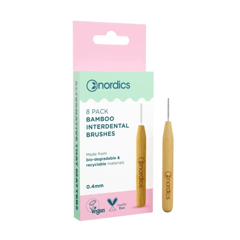 Froomo, маркетплейс професійної косметики та товарів для здоров'я\\Набір з 8-ми бамбукових міжзубних йоржиків Nordics 0,4мм. Міжзубні йоржики Нордікс
