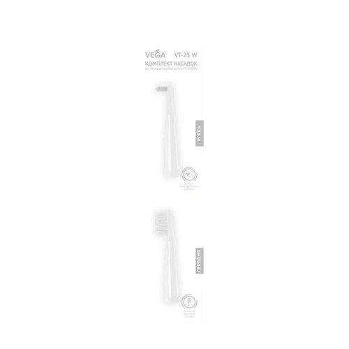 Froomo, маркетплейс професійної косметики та товарів для здоров'я\\Насадки Vega VT-25 W для звукової зубної щітки VT-600 2 шт білі