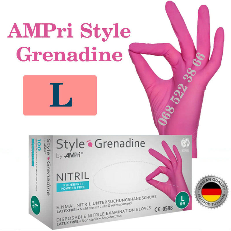 Рукавиці нітрилові рожевий AMPri Style Grenadine розмір L, щільність 4г, уп.100 шт