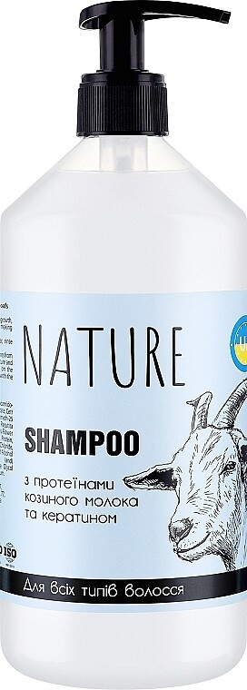 Шампунь для всіх типів волосся з протеїнами козячого молока та кератином Nature Shampoo